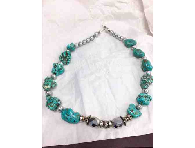 Turquoise Stone with Swarovski Glass, Silver pearls, and 1924 Vintage Swarovski rhinestone elements.