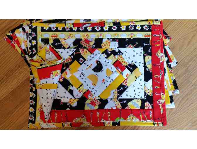 Chicken Themed Quilted Placemats and Napkins (Set of 6)