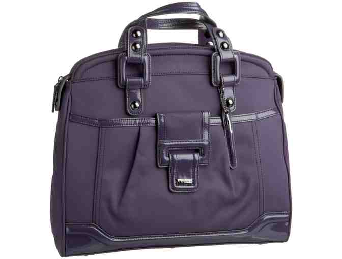 Protective padded compartment fits standard-size laptop. Premium patent-leather trim with contrast edges. Includes leather charm with Cross mini pen. The Fall collection is inspired by classic lady-like styling with inverted pleat pocket detailing and large pocket flap closures. Mixing preppy menswear fabrications with patent leather and contrast edge tipping brings a modern twist to the styles.