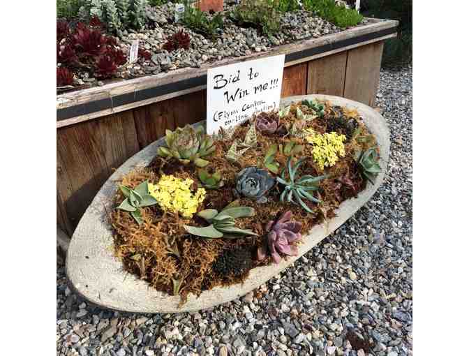 Cast stone succulent planter filled with aloes, echevarias, and more!
