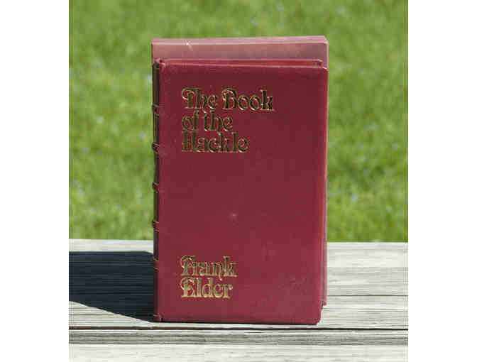 1979 first edition published by Scottish Academic Press Edinburgh. This hardcover book is in excellent condition. Full red morocco with raised bands, gilt spine rules, cover title and marbled end papers. It is illustrated with color photo frontispiece, 6 color plates plus drawings, 29 examples of hackles mounted at the rear of the book and plain maroon paper-covered board slipcase. The book is bound by A.W. Lumsden with their name in gilt inside rear cover. Publisher's letter-head announcement laid in - spectacular example and one of only a handful of books to contain actual fly tying materials. Elder died before publication in 1977 and the production was seen through to completion by his son. (With thanks to Dave Foley of David Foley Sporting Books for his assistance with the description).