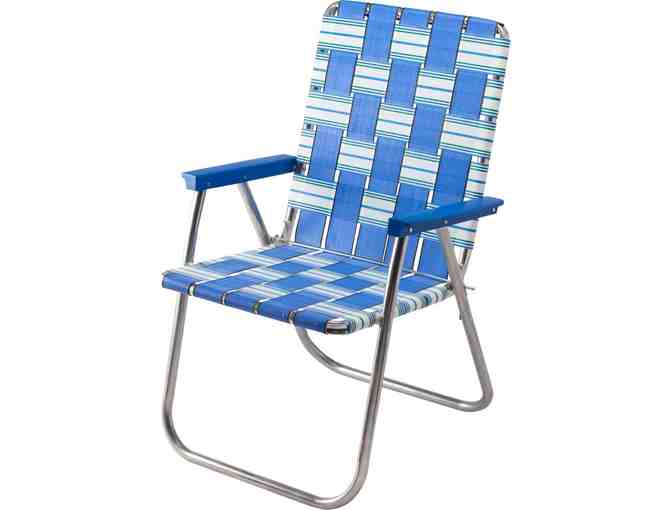 We couldn’t be happier to bring back this patio classic, just in time for summer barbeques, picnics, and days spent at the beach. This deluxe lawn chair features a sturdy aluminum frame that’s lightweight and rustproof, a steel support bar, and steel rivets, so you know it’ll hold up for years of enjoyment. Woven plastic webbing provides comfortable back and seat support, and the armrests are made of durable plastic to stand up to any kind of weather. This portable chair weighs just 4.2 pounds and folds flat to go wherever you need a seat. 32" tall chair with 18½"Wx15½"L seat and 21½"H back.