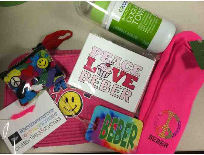 Your daughter will love this adorable care and team spirit basket from Frankie's on the Park, "the spot to shop for girls"! From adorable Beber pink tube socks, to Beber stationary, to "go team" socks, this package is the perfect gift for your camper and will fit all sizes.