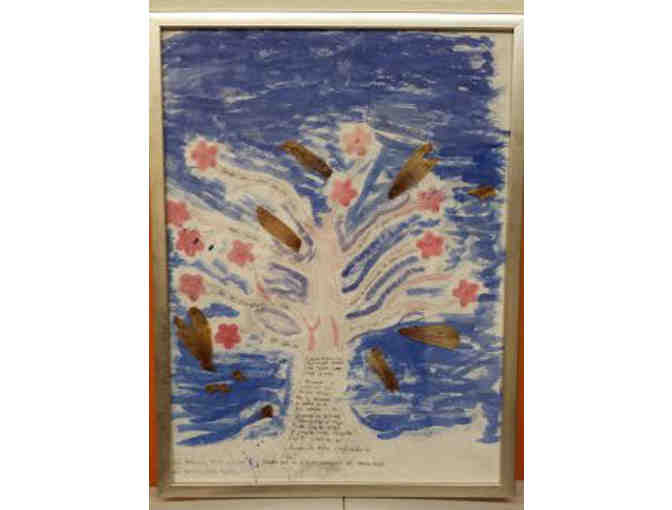 Framed, handwritten and illustrated poems by the students of Ms. Arce's Language Arts class. Working in groups students illustrated and wrote poems