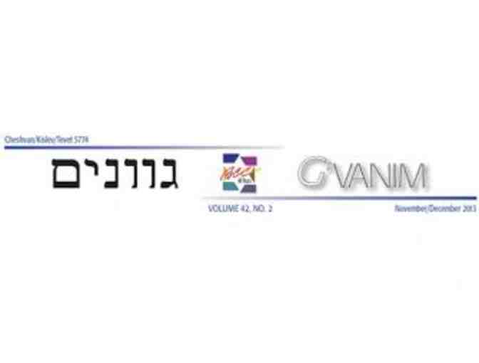 Winning bidder can advertise your business to the BCC community (members, friends, visitors, and other organizations who receive our newsletter) with a business card ad in G'vanim for one year (six issues). A great way to support BCC and promote your business at the same time!