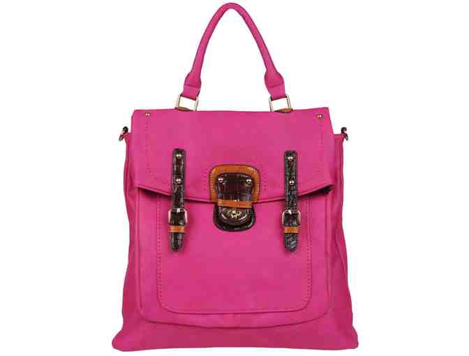 - Top flap with zipper pocket; closes with clasp and dual magnetic closure