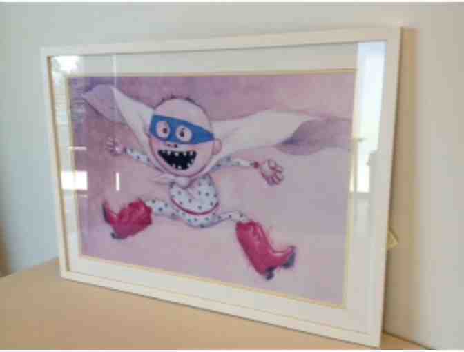 Winning bidder receives a framed color print of Super Baby adorned in stars and red cowboy boots