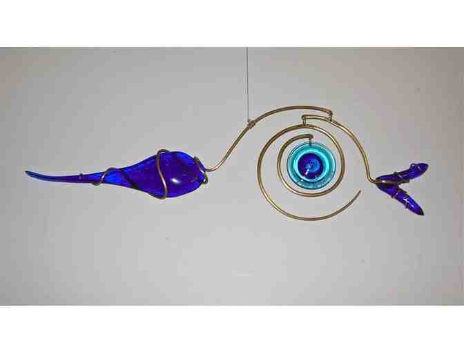 "OCEAN" is a one-of-a-kind piece created from recycled glass and 1/4" & 3/16" naval brass rod (corrosion resistant alloy) by artist Larry Lipsky and accomplished glassblower Greg Lee of the late, greatly lamented Maho Bay Glassworks.