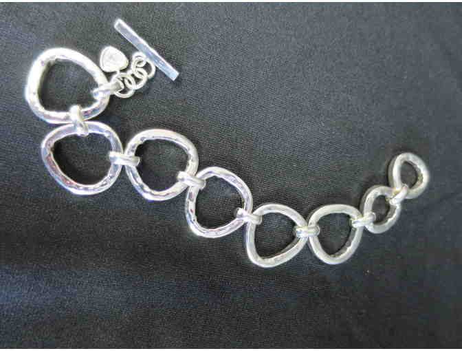 Beautiful Silpada designed large loop chain bracelet is handcrafted of the finest sterling silver. It has a toggle clasp and adjusts from 7.5" to 8.5". Retired.