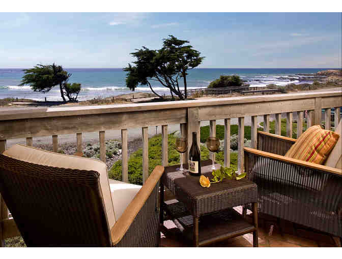 One night stay in a fireplace room across from the Pacific Ocean.