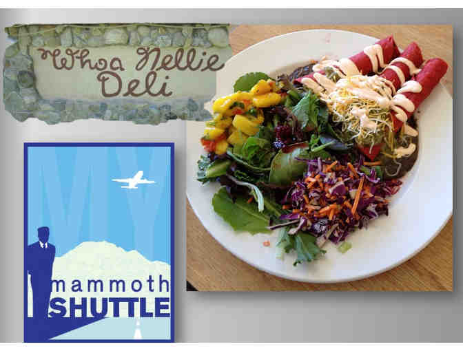 Enjoy dinner at Whoa Nellie Deli (four entrees and four drinks) and a ride to and from the restaurant from Mammoth Lakes – by My Mammoth Shuttle.