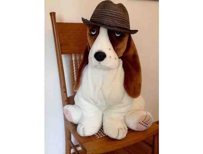 HUGE hard-to-find retired 24 inch Hush Puppies plush basset wearing a fashionable fedora. This exceptional dog is one good looking hound in primo condition and is especially fetching in a new hat! Gorgeous ears. Expressive face. Come on, you know you want this one! (New fedora by Merona, included.)