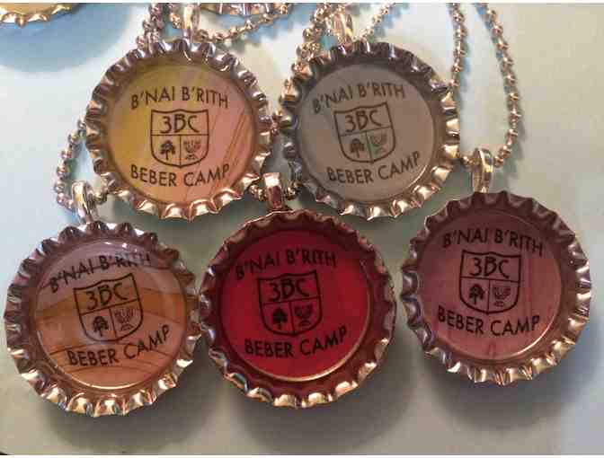 Made by Beber Camp Artist Sheryl Feldman, Beber Bottle Cap Necklaces come in a variety of colors and are perfect for campers at any age.