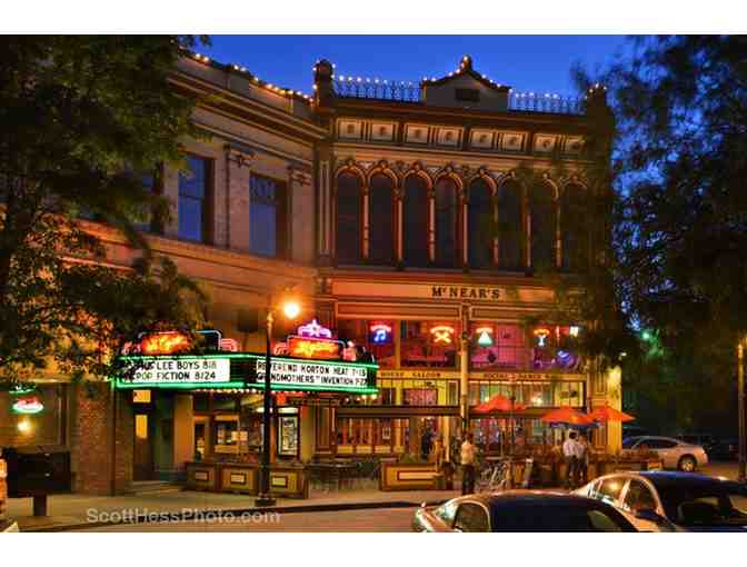 Located in historic downtown Petaluma, McNear's Saloon & Dining House offers more than 40 dishes, a full-service bar featuring local wines and microbrews. McNear's restaurant is also adjoined to McNear's Mystic Theatre, making "Dinner & a Show" a single stop!