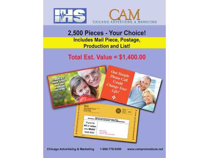 A 2,500 piece direct mail campaign that includes the mail piece, postage, production, and list!