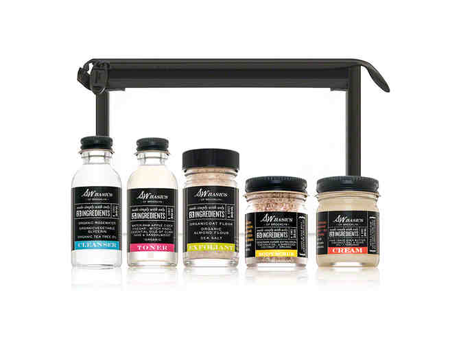 SW Basics The Full Mini Kit has all the skin clarifying and nourishing essentials needed while traveling. The cleanser and exfoliant pair together to remove dead skin cells and polish skin, as the toner whisks away impurities and prepares skin for nourishing cream.