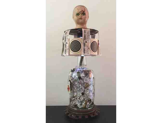 Rum bottle, shell casings and other found objects (with lights and remote).