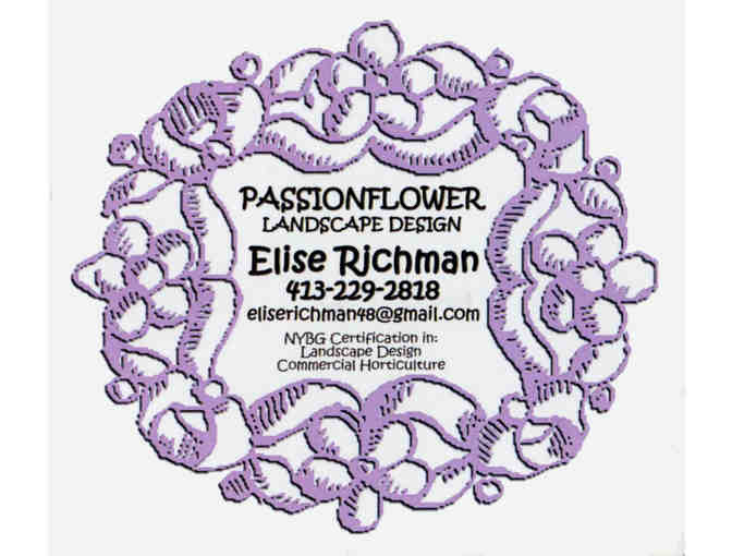 One hour consultation by area landscape designer, Elise Richman. NY Botanical Garden graduate of Commercial Horticulture School of Landscape Design. Certifications in Landscape Design, Garden Design, Plant and Tree Identification. Especially creative, pleasant to work with, and innately able to translate clients' dreams into the gardens they envisioned. References from Westchester County, NY as well as the Berkshires.