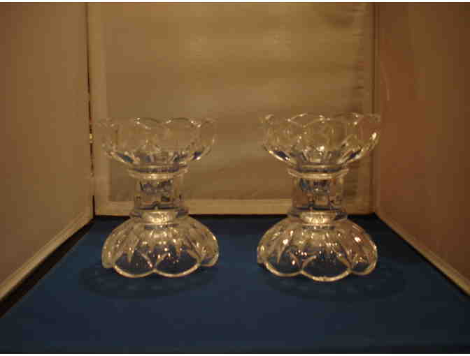 This attractive pair of candle holders measures 4 1/2" tall and 3 1/2" in diameter.