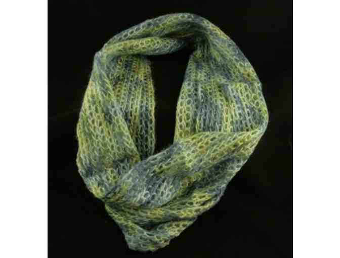 This infinity scarf in nålbinding was made by North House Instructor Larry Schmitt. He used the seldom-seen “Danish stitch.” It is large enough to be draped two or three times around.