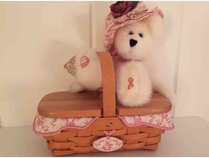 Do you love baskets? Are you a collector? If so, this beautiful Longaberger (8" x 4" wide and 6" tall) handmade basket, is for you! This gorgeous pink basket from the Hope Campaign is accompanied with a 6" tall white Boyd's Bear, from the Breast Cancer Foundation with a touch of pink on it. Don't miss out on this great basket! This is truly a collectors item that you won't want to miss out on! Embroidered with the Breast Cancer and Longaberger logos!