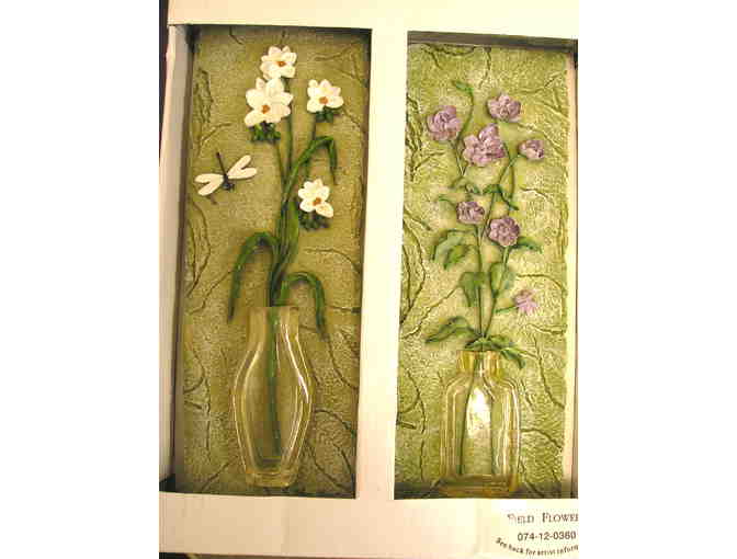 A set of two (2) wall plaques by Cheri Blum which are named "Field Flowers." 8 3/4" high x 3" wide and ready to hang on your wall.