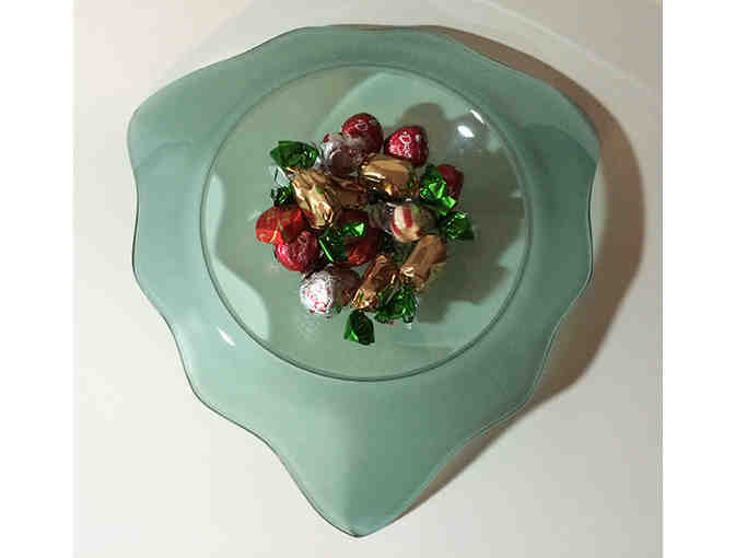 This very unique glass piece, doubles as a practical bowl. Put that special dip or candy in this unusual work of art.