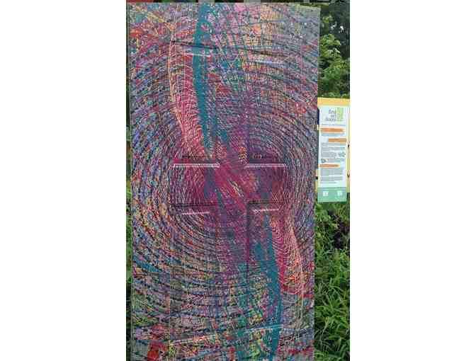 Pendulum painting is a super fun technique that uses a pendulum to create the marks in the artwork. A paint dispenser is attached to the end of the pendulum. As it swings, paint drips revealing its motion. This door was created by attendees the 2015 Arts and Culture Xpo.