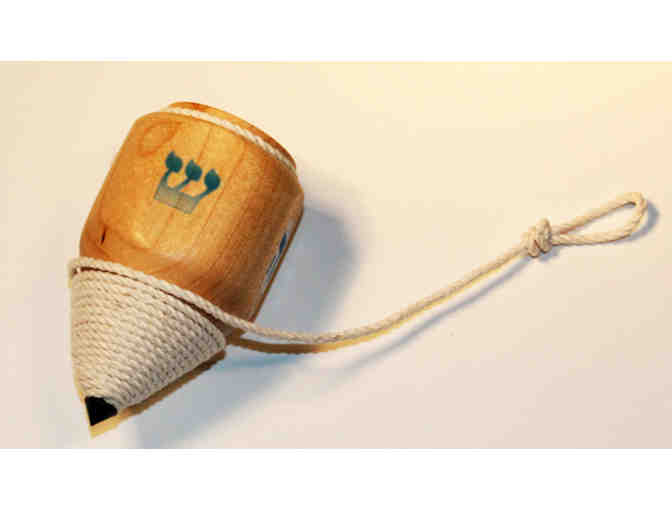 The dreidel is spun by winding a string around it and, with a flick of the wrist, it hits the floor and spins. Each dreidel is turned from maple, sanded smooth, and coated with a clear finish. A replaceable plastic tip is used to protect floors. Illustrated instructions are included. This is the only dreidel with this design on the market.