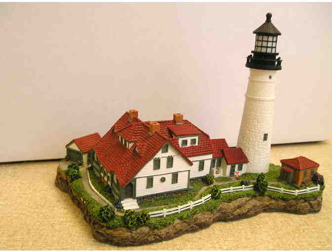 This is a magnificient American Lighthouse carefully sculpted to accurately depict the lighthouse in its natural setting.