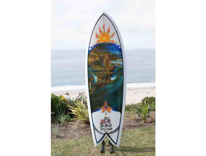 The board was shaped by Terry Senate. Terry is a Southern California native who says, "When I first started shaping boards, I never planned to make a career out of it; I just wanted to make boards for myself and my friends." Forty years later and Terry is a legend in the surfing community in Southern California.