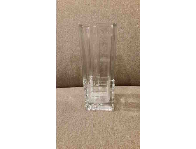Standing almost 9" tall and almost 3" square, this cut glass vase would make a wonderful addition to your home.