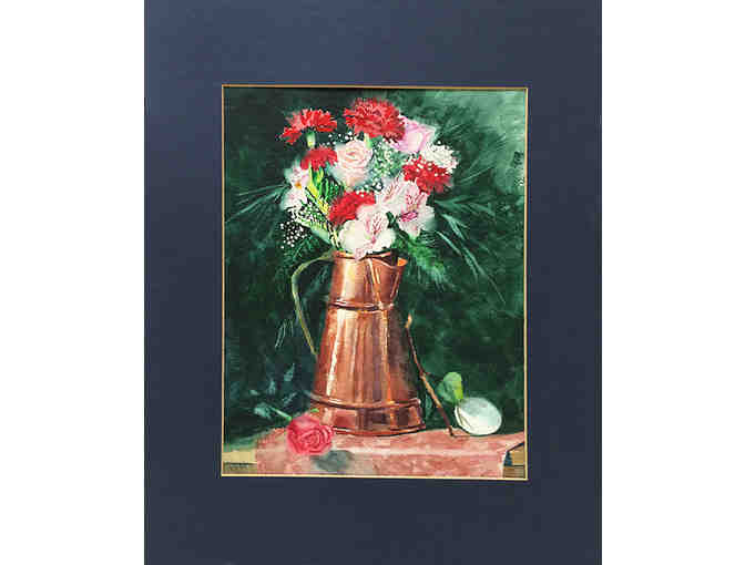 "Copper Pot with Flowers" a watercolor by Violet Wilcox