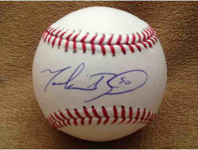 Autographed baseball by Red Sox player Mookie Betts