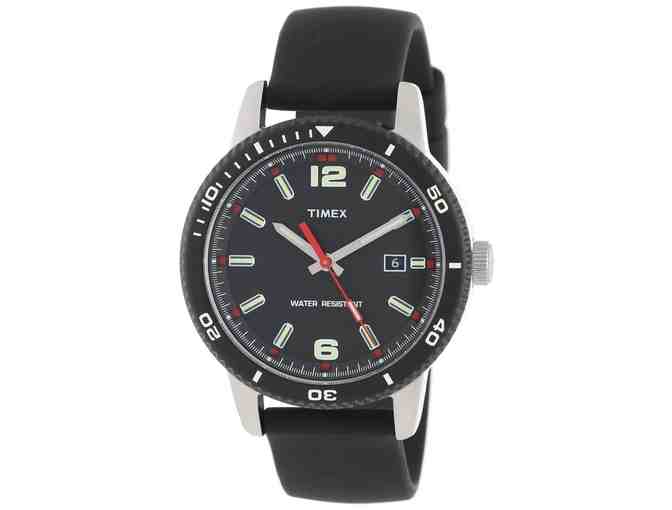 Indiglo night-light, stainless steel case, black dial with luminous markers and hands. Black silicone strap Water-resistant to 50 M (165 feet).