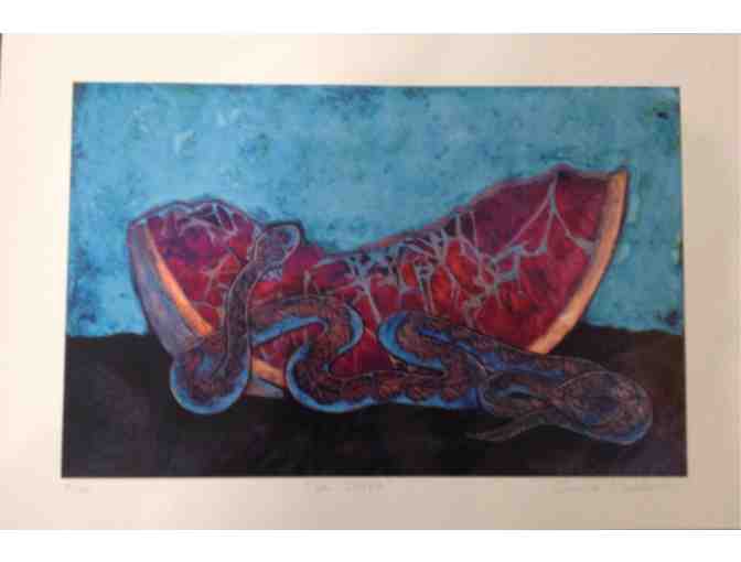 Beautiful numbered print of a copper painting by Cecilia Calderon. Approximate size 12"x18"