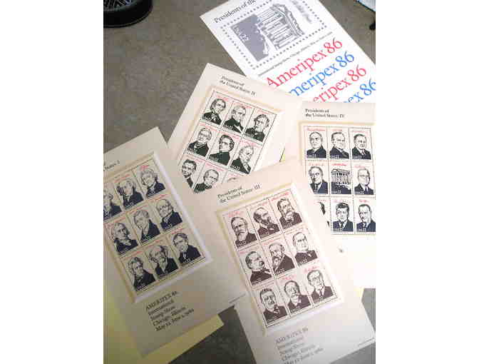 • 36 stamps of Presidents of the United States from the International Stamp Show, Chicago, Illinois, May 22-June 1, 1986