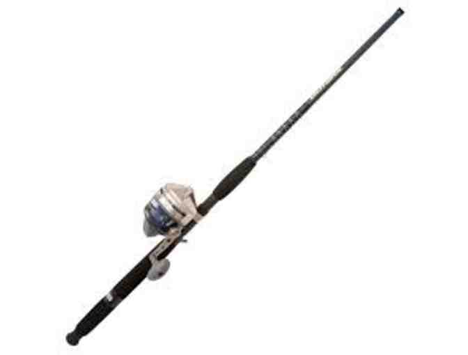 One Zebco Saltfish Spincast Combo, Zebco custom rod/reel combo, a Bass Pro Shop visor, Quantum sports cap, Utility box, two buffs, and some super fishing hooks!