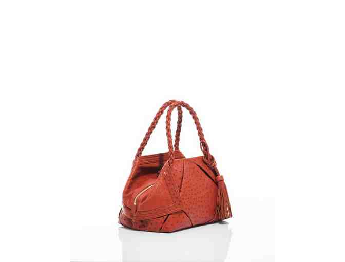 The winner of this item is the lucky new owner of a haute-couture handbag... A handbag made of the finest materials, is a gorgeous persimmon color with bold pleats, gold-tone hardware, woven double handles, zip closure and detachable tassel Inside it features an additional zip and cell phone compartments.