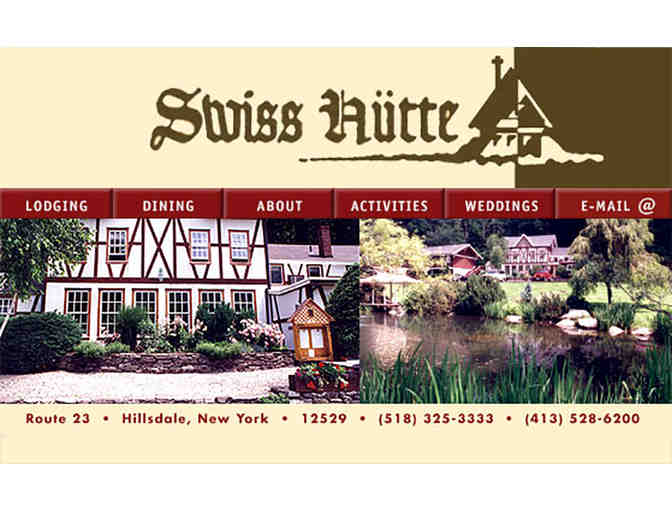Enjoy a great lunch for two at the Swiss Hutte in Hillsdale, New York.