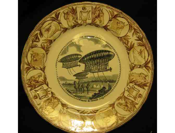 The winning bidder will own a piece of France dating from the 1800s - earthenware plates of historical significance. The pearl of the collection is the plate entitled Les courses d'avenir, which features a race of airships. It was made in the late 1800s by Jules Vieillard & Co. of Bordeaux, one of France's top pottery companies of that time. Jules Vieillard (June 8, 1813 - September 17, 1868) took over the factory of David Johnston, located in the former mills of Chartrons, the Bacalan dock in Bordeaux. Vieillard significantly turned around the activity of the pottery and in the 1860s, it became the third in France after Creil-Montereau and Sarreguemines. On the death of his sons the factory closed in 1895. The legacy of Vieillard is celebrated today in a permanent exhibit hall in the Musée des arts décoratifs in Bordeaux.