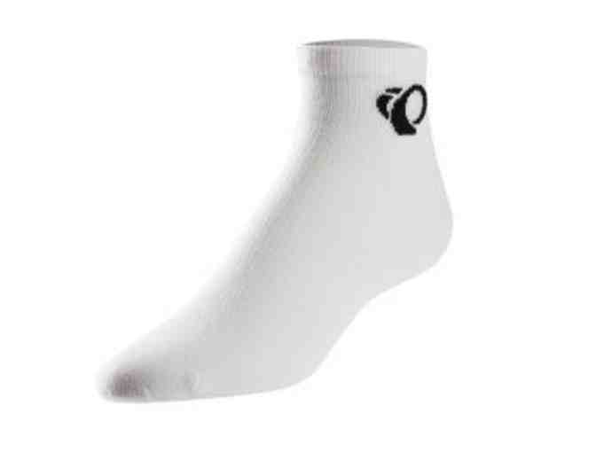 One pair of Men's XL Pearl iZumi Attack sock in white. Low height. Perfect for riding a bike or running.
