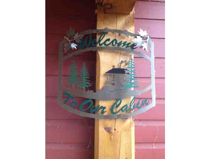 Handcrafted and unique, this decorative metal sculpture is designed to be hung outside a cabin home. Comes with padded spacers on the back to protect the wall surface the sign hangs on.