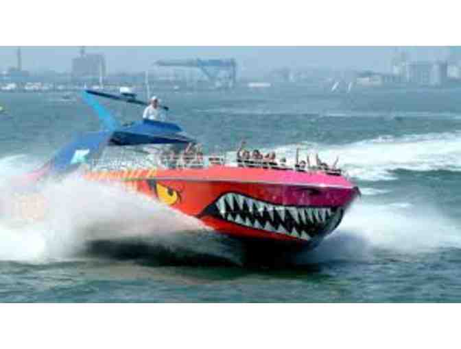Enjoy four tickets to Boston Harbor's Codzilla thrill ride! Get ready for more thrills, more laughs and more speed than you ever imagined as you zip across the ocean at up to 40 miles per hour. Don't worry, though; a ride on Codzilla is as entertaining as it is thrilling. The wind roars. The music blares. And the waves will splash during a wet and wild 40-minute ride of full blast, sensational fun.