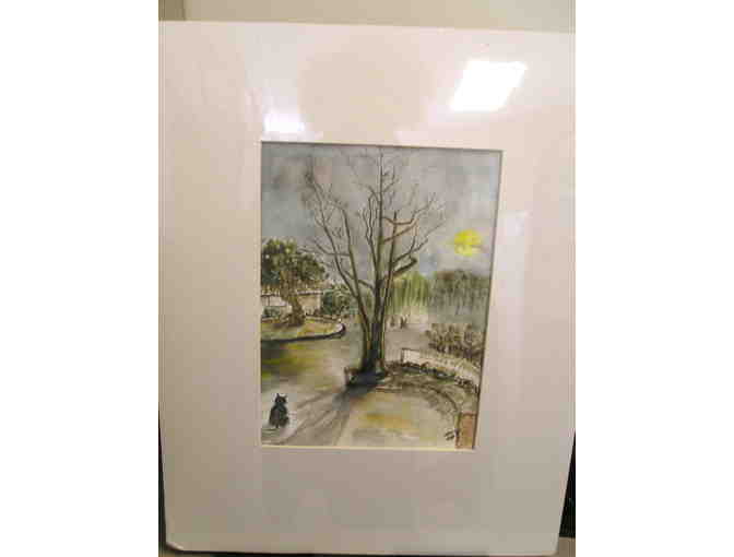 Very pretty watercolor painting of a view of the Motherhouse property. Matted 20"x16"