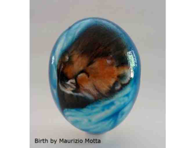 Painted Egg - Medium: Acrylic on ostrich egg The egg comes with a stand, not featured in the picture. Certificate of Authenticity is provided. La nascita e il momento dellentrata in vita di ogni essere. Birth is the moment for every creature to enter life.