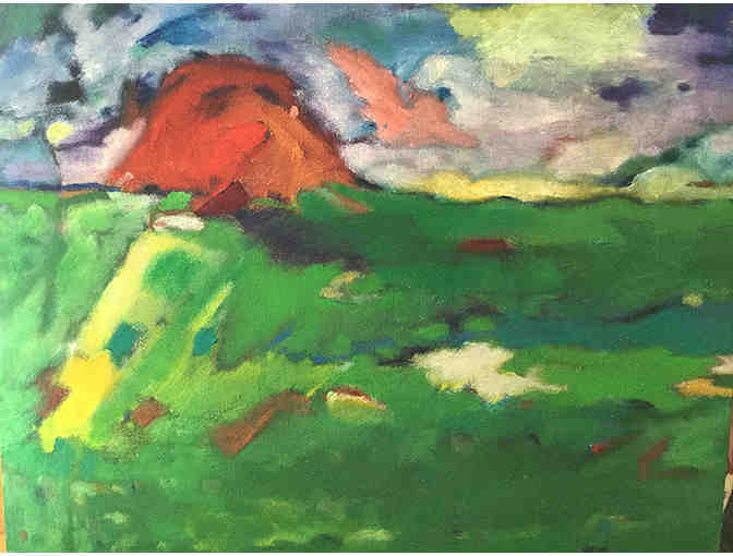 A original acrylic and oil on canvas landscape painting from West Stockbridge, Massachusetts by artist Ilene Spiewak. It measures 16" x 19" and has painted edges.