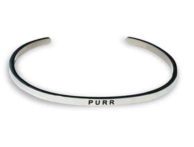 Display your affection for cats with these two Stainless Steel Bangle / Cuff Bracelets stamped with "Purr".