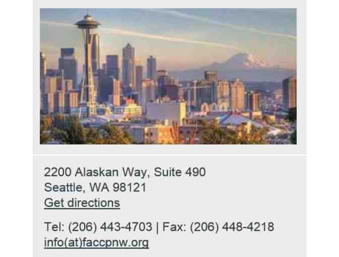 The French American Chamber of Commerce of the Pacific Northwest is a networking organization for business professionals from large multinational companies, as well as SMEs and entrepreneurs. The FACC’s services are designed for bi-national, bi-cultural business people operating both in Europe and in the Pacific Northwest. It is based in Seattle and covers Washington, Oregon and Idaho. FACC PNW is part of a worldwide network (CCI France International) of 112 chambers in 82 countries.