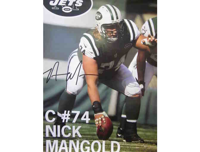 A replica lithograph autographed poster featuring 6-time Pro Bowler and 3-time All-Pro center Nick Mangold